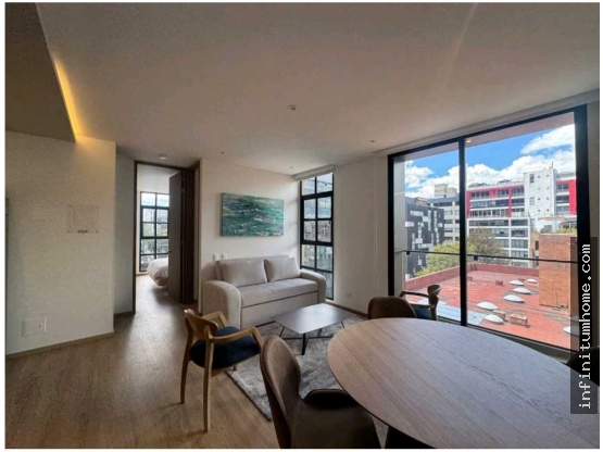 Pesos Colombianos[RTYD3] Hermoso Apartaestudio Iluminado en Chico l Vista exterior nuevo, con área de 58m2, 1 habitación, 2 baños, 1 parqueadero y 1 depósito. El edificio cuenta con caldera, planta eléctrica, salon de juntas, 2 coworking en la terraza, vigilancia 24 horas, terraza BBQ.