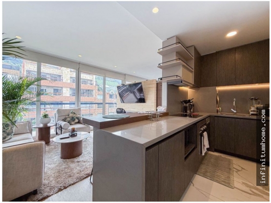 [ABGM36]   Moderno apartaestudio para venta y arriendo en Chicó reservado l 57 mt2  l 1 habitación l ⁠2 baños l ⁠Piso 4 l ⁠Exterior, muy iluminado l ⁠Balcón amplio l Cocina americana l Zona de lavandería l ⁠2 parqueaderos l Depósito l Edificio de 2 años de construido, cuenta con vigilancia 24/7, parqueaderos de visitantes, caldera, gym, BBQ, salón social, sauna l Alquiler de 6 millones incluye administración