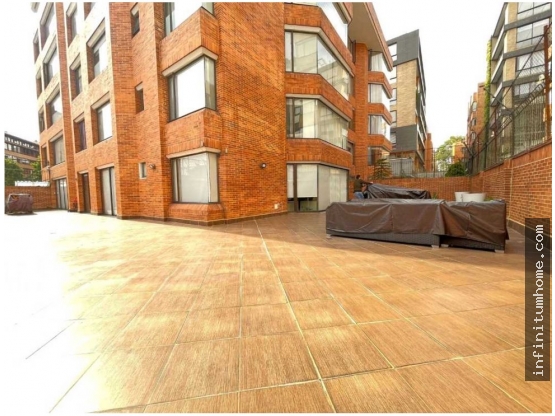 Pesos Colombianos[IRTU3] Hermoso Apartamento Iluminado Interior en La Carolina l Área 220 mts2 l Área de Terraza 200 mts2 l Alcoba principal bastante amplia con chimenea natural, con baño, vestier, dos habitaciones más con baño privado cada una l Estudio (que puede ser usado como 4 habitación) l Estar de televisión l Comedor independiente y sala con Chimenea a gas l Baño social l Cocina y baño del servicio l Todas las áreas tienen salida a la terraza l El apartamento se remodelo hace unos años totalmente incluyendo ductos y cableados l 4 garajes, 2 depósitos l 1er piso interior muy iluminado l Edificio de 23 años de construcción con un gran lobby recién remodelado l Alquiler incluida la administración.