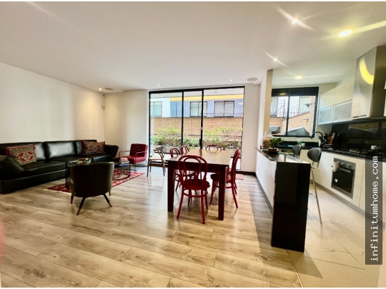 Pesos ColombianosHermoso Apartamento en El Chico a pocas cuadras del parque de la 93. * 130m2 * 60 m2 de terraza con punto de agua y gas + pèrgola autorizada + balcón en habitación principal l 8 años de construido l 3 habitaciones (dos comparten baño) * 2 baños * baño social * Caldera * Apto domotizado * Sonido en zona social y habitaciones * 3 parqueaderos independientes * deposito espacioso Edificio con seguridad 24/7, varios parqueaderos de visitantes, 2 ascensores, cancha de squash, salòn de juegos (PingPon y Billar), salòn comunal, sala de juntas, gimnasio, sala de masaje, parque para niños, terraza comunal con dos estaciones de BBQ
