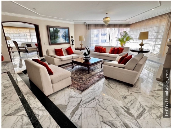 Pesos Colombianos[PRTB44] Apartamento familiar con disponibilidad inmediata en La Carolina l Múltiples vías de acceso l Área: 363 mt2 l Cerca a Club el Country l Ubicado en calle secundaria de poco tráfico vehicular l Espacioso ascensor privado da acceso al apartamento donde a primera vista se observa un lobby que da la bienvenida a la zona social compuesta por sala, comedor y estudio. Todos en ambientes separados y con tamaños que garantizan la comodidad de quien los utilice l El acceso a la zona privada está precedida por un family room bastante generoso que conecta las 4 alcobas, de las cuales 2 tienen baño privado y otras dos comparten un baño. La alcoba principal cuenta además con un vestier de muy buen tamaño y perféctamente iluminado l La cocina es cerrada y por su tamaño, cuenta con un comedor auxiliar, así como una isla que permite integrar a la familia en un ambiente fresco y muy cómodo l Zona de lavandería l Cuarto y baño del servicio l tres parqueaderos (2 en línea y uno independiente) l Depósito l Alquiler incluye admiistración