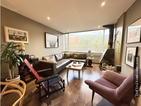 Pesos Colombianos[SPRB16] Disfruta de la tranquilidad y el encanto de vivir en una de las zonas más tradicionales y apetecidas del norte de Bogotá: La Porciuncula/Nogal. Este acogedor apartamento en cuarto piso exterior de 72 m² ofrece una combinación perfecta entre calidez, luz natural y una vista única hacia las montañas, los árboles y los techos de casas de conservación. Su sala con chimenea natural invita al descanso, mientras que la cocina abierta se integra armónicamente al área social, creando un ambiente moderno y funcional. Cuenta con dos habitaciones, un baño completo y un baño social, además de una práctica zona de lavandería con gas. El inmueble dispone de puerta y chapa de seguridad, vidrios laminados con filtro UV, un parqueadero privado y depósito tipo clóset. El edificio, con vigilancia 24 horas y ascensor, tiene un ambiente tranquilo con solo 17 apartamentos en total, ideal para quienes buscan privacidad y buena ubicación. Su vista natural, su distribución práctica y su atmósfera acogedora hacen de este apartamento un verdadero refugio urbano con el encanto clásico de la Porciúncula.