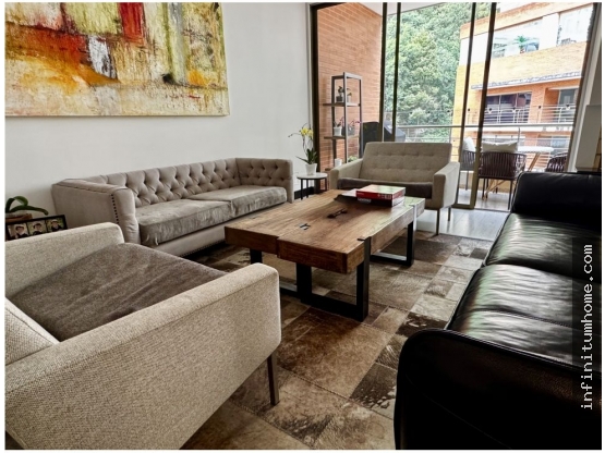 Pesos Colombianos[PRTB32] Espectacular Apartamento en Zona Exclusiva de la Ciudad Reserva de la Sierra l Acabados AAA ubicado en un cuarto piso exterior. Al ingreso por el ascensor privado se encuentra un hall de recibimiento y baño social. Zona social conformado por sala- comedor con chimenea y acceso a terraza con espacio para BBQ y chimenea. Cocina abierta con acceso a zona de ropas y baño de servicio. No tiene cuarto de servicio pero se puede volver a hacer l Zona privada conformada por 3 alcobas, la principal con vestier y baño y las alcobas secundarias cada una con baño en su interior , family room con acceso a balcón pequeño l 3 parqueaderos independientes y un depósito. Conjunto cerrado con 9 torres, club house con psicina, zona de niños, gimnasio, parques infantiles , cancha de tenis.